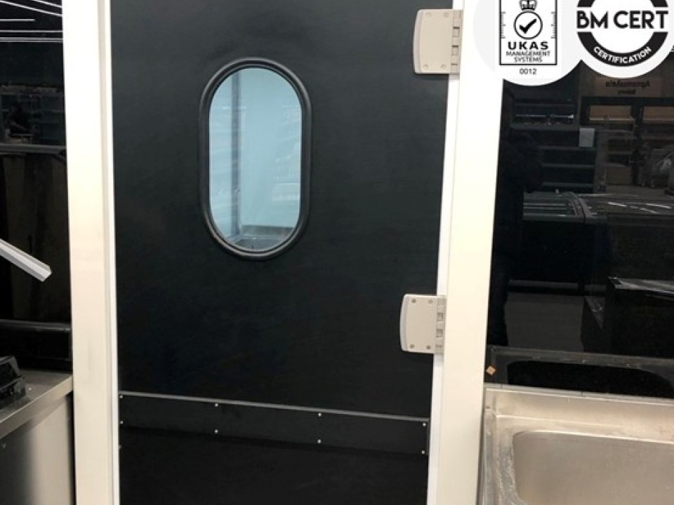 Practical doors for supermarkets and warehouses as they separate the warehouse area from the customer service area and provide staff with quick passage, even for pallet trucks, without creating any damage to the door from the impact