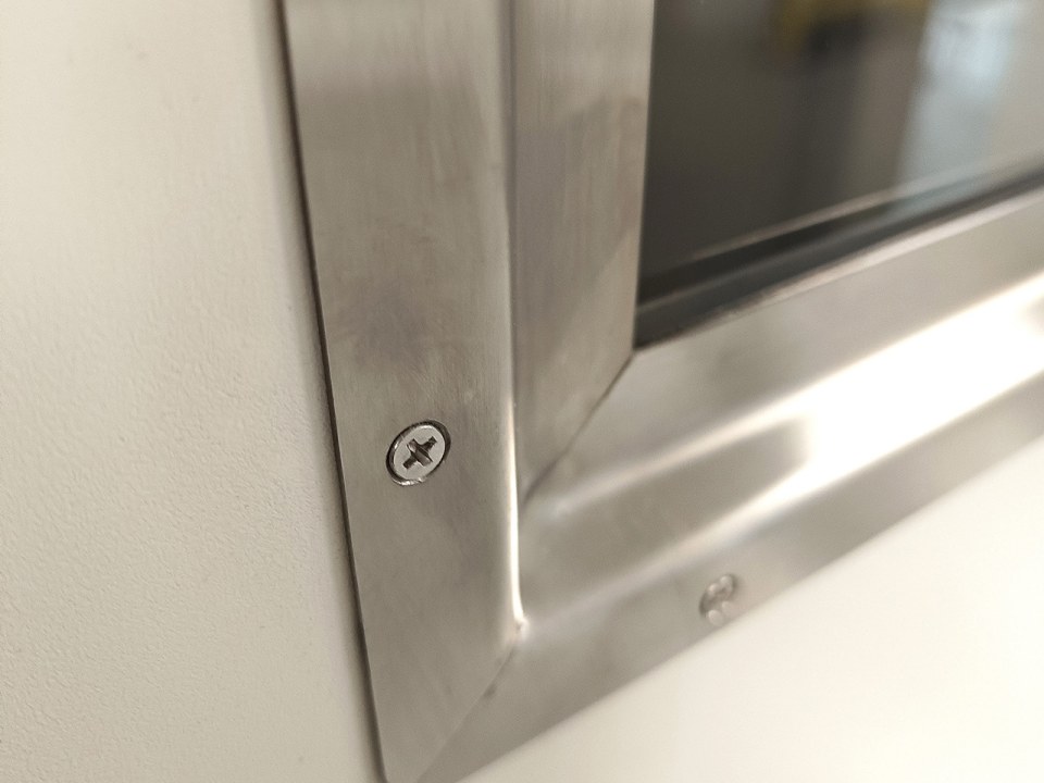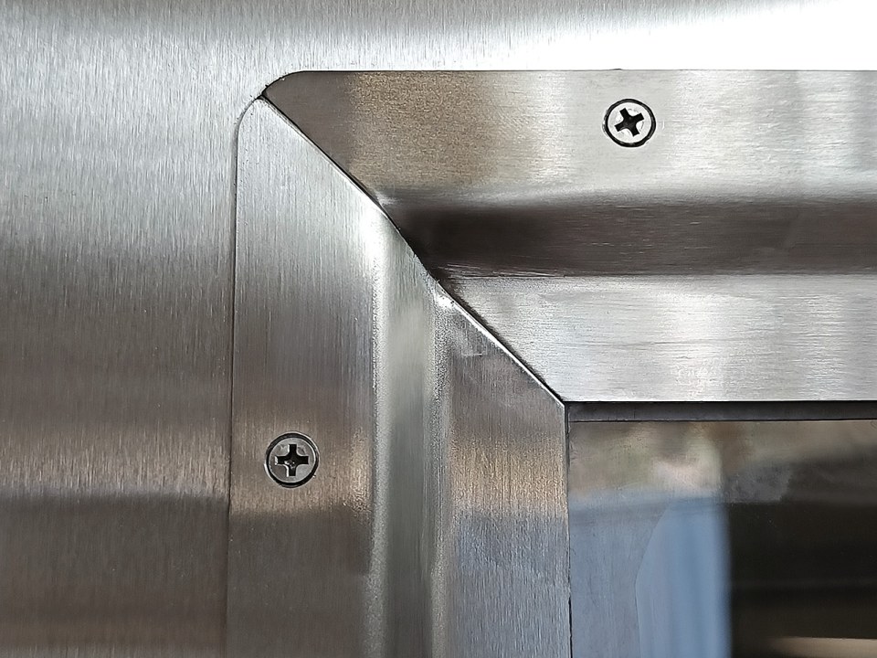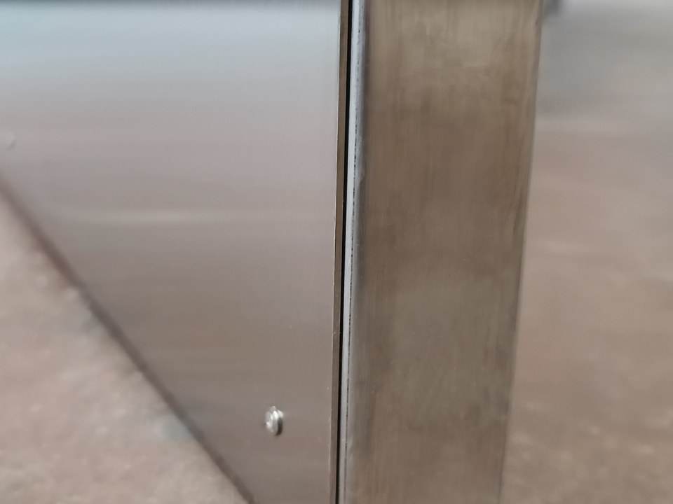 - Sheet metal made of stainless steel 304, 0,8mm thick, hygienic design, seamless, with welded edges.