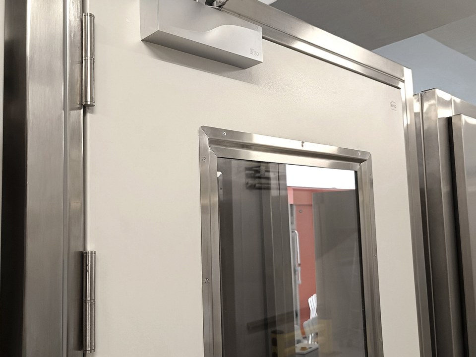Hygienic doors are completely leak-proof with polyurethane insulation. They are available in single or double-leaf versions. They come with a stainless steel handle, with or without a lock, as well as a pull/push U-shaped handle. Their modern design combines high aesthetics, durability, and soundproofing properties.