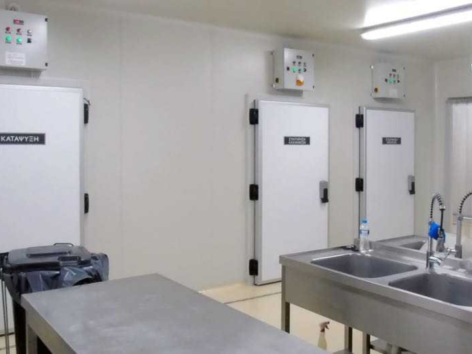 The modern facilities needed due to the development of the business in Polykastro Kilkis were fully met. The main requirement of the company was that the space should be functional and follow the production line of the meals. From the entry of the raw materials, to the sanitary preparation area, the maintenance of the meals at different temperatures and finally the safe exit from the company’s premises.